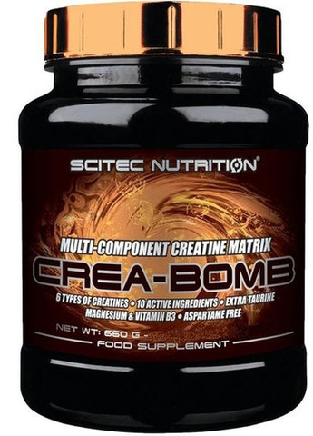 Crea-Bomb Scitec Nutrition - креатиновий комплекс в пакетах, заснований на новітніх досягненнях в сфері розробки спортивного харчування. Цей продукт має велику ефективність завдяки тому, що в своєму складі містить матрицю з шести форм креатину, таких як трикреатин і дикреатин малат, етил естер, оротат, глюконат, мікронізований моногідрат, які дають надбавку в силових показниках практично на 25 відсотків. Використання Crea-Bomb Scitec Nutrition збільшує анаболічне середовище, а так само сприяє зменшенню шкоди від молочної кислоти, вона є шкідливою речовиною, що виділяється в результаті переробки білків. Комплекс дозволяє забезпечити потреби організму в креатині повністю, збагачений таурином і сприяє скороченню витрати м'язового глікогену, таким чином, прискорюючи анаболізм і відновлення після тренінгу. Завдяки поєднанню різних форм креатину забезпечується максимальна засвоюваність продукту і максимально швидка регенерація АТФ, що дозволяє тренуватися інтенсивніше і триваліше. Побічним ефектом Креа-Бомб Скайтек Нутришн є затримка рідини в організмі, а це дозволяє збільшити об'єми тіла і візуально виглядати крупніше. Але не можна не згадати також про те, що креатин незалежно від його форми виразно дозволяє наростити сухі м'язи, не додаючи в жировій масі і ставати сильнішими домагаючись поставленої задачі. Дія Crea-Bomb Scitec Nutrition Збільшує енергетичні можливості організму Пригнічує вплив молочної кислоти Стимулює синтез білка Підвищує силу і витривалість Дозволяє нарощувати м'язи Гідратація Переваги Crea-Bomb Scitec Nutrition Кілька видів креатину в одному продукті Великий відсоток засвоєння Тривала дія Склад Crea-Bomb Scitec Nutrition однієї порції - 5,5 грам: Вітамін В3 (ніацин) 2,50 мг Магній 57 мг Фірмова матриця CREA-BOMB 5607 мг Мультикреатинова матриця 5000 мг Креатин моногідрат 4900 мг Мікронізований креатину моногідрат MicronTec 50 мг Буферизований креатину моногідрат Cre-Alkalyn 10 мг Креатин піруват 10 мг Креатин цитрат 10 мг Креатин фосфат 10 мг Підтримує матриця 607 мг Таурин 500 мг Оксид магнію 96 мг Молочна кислота 10 мг Інгредієнти: Креатиновіа матриця (креатину моногідрат, мікронізований креатину моногідрат, кре-алкалін (буферизований креатину моногідрат), креатину піруват, креатину цитрат, креатину фосфат), таурин, ароматизатор, агент антислідуючий: трикальцію фосфат; оксид магнію, барвник: полуничний червоний; підсолоджувачі: ацесульфам калію, сукралоза; регулятор кислотності: зневоднена лимонна кислота. Як приймати Crea-Bomb Scitec Nutrition і дозування: спортсменам рекомендується вживати добавку без фази завантаження в розмірі 5-10 грамів на добу, бажано до тренування і після нього протягом 30 хвилин запиваючи мінімум 250 мл води. Під час використання продукту необхідно вживати мінімум три літри води на добу.