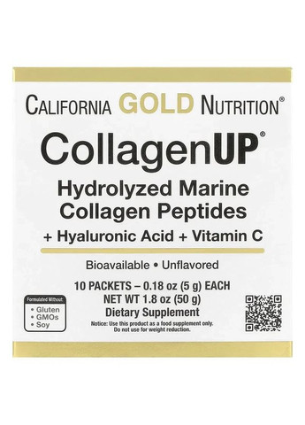 CollagenUP, 206 г (7,26 унції), від California Gold Nutrition Пептиди морського колагену, гіалуронова кислота й вітамін C З гідролізованим рибним колагеном (що не походить із великої рогатої худоби) без ароматизаторів З гіалуроновою кислотою не тваринного походження й вітаміном C Підтримка здоров’я волосся, шкіри, нігтів, суглобів і кісток* Гідролізований ферментативним способом колаген, розщеплений на біодоступні пептиди Не містить глютену, ГМО та сої Виготовлено на підприємстві, яке має реєстрацію сучасної належної виробничої практики (cGMP) і проходить незалежні перевірки Гарантія 100 % Gold Guarantee Тепер у пакетику, що закривається, для зручного зберігання