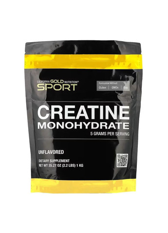 California Gold Nutrition Creatine Monohydrate — добавка, яка ексклюзивно виробляється з використанням одержуваного в Німеччині моногідрату креатину. Продукт California Gold Nutrition Sport Creatine НЕ МІСТИТЬ: Доданих штучних підсолоджувачів або цукрів Барвників Декстринов Наповнювачів Смакових добавок (штучних або натуральних) Глютена ГМО Гідротованих олій Забілювальних компонентів немолочного походження Порошкуватих рослинних олій Загусників Додаткові факти Розмір порції: 1 мірна ложка (приблизно 5 г) Кількість порцій: приблизно 200 Креатин моногідрат 5 г Рекомендації щодо застосування: Змішайте 1 ложку порошку без гірки (5 г) зі склянкою рідини на ваш вибір, найкраще з фруктовим соком.