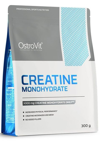 OstroVit Креатин моногідрат - високоякісна харчова добавка, джерело креатину у формі моногідрату. Це препарат без додавання цукру, що випускається у порошковій формі та з різними смаковими добавками. Продукт призначений спортсменам та фізично активним людям, які бажають доповнити свій раціон цінним компонентом. одна порція харчової добавки забезпечує організм моногідратом креатину. варіанти смаку –Завдяки широкій гамі смаків кожен знайде продукт, який порадує його смакові рецептори. Без додавання цукру – препарат містить низькокалорійні підсолоджувачі, які впливають на енергетичну цінність продукту. 1 порція = ¾ мірної ложки = 3 г. Ефективність – упаковка продукту містить 333 порції. Зручна форма – препарат, що випускається у порошковій формі, забезпечує зручний прийом біологічно активної добавки та ідеально підходить для людей, яким важко ковтати таблетки. OstroVit Креатин моногідрат - концентроване джерело креатину Креатин є хімічною сполукою, яка природно присутня в людському організмі. Речовина надходить в організм також із щоденним раціоном - креатин можна знайти в продуктах тваринного походження, таких як м'ясо, риба та яйця, а також у вигляді біологічно активних добавок. У препараті OstroVit використовують моногідрат креатину, тобто. сполука молекули креатину з молекулою води в одну молекулу - оскільки креатин є гідрофільною сполукою, він легко з'єднується з водою і тому є речовиною з відмінною біодоступністю. Моногідрат креатину є структурно найпростішою формою креатину, а також найбільш популярним серед спортсменів з'єднанням - він ідеально підходить як для спортсменів-початківців, які займаються активним способом життя, так і для професіоналів, завдяки тому, що креатин підвищує фізичну працездатність при послідовних коротких і дуже інтенсивних тренуваннях. 3 г креатину. Спосіб застосування 3 г порції (3/4 мірної ложки) розмішайте в 100-150 мл води чи соку. У тренувальні дні вживайте одну порцію щодня - після пробудження чи після тренування. У дні, вільні від тренувань, вживайте одну порцію щодня після пробудження. Застереження: При вагітності, годуванні груддю, прийомі медичних препаратів чи наявності будь-яких захворювань слід проконсультуватися з лікарем перед вживанням харчових добавок. У разі виникнення побічних реакцій припиніть використання та проконсультуйтеся з лікарем. Зберігати у недоступному для дітей місці. Не використовувати, якщо зовнішня захисна мембрана відсутня чи пошкоджена. *** Виробник залишає за собою право змінити зовнішній вигляд упаковки, склад та/або консистенцію продукту. **** БАД не є лікарським засобом!
