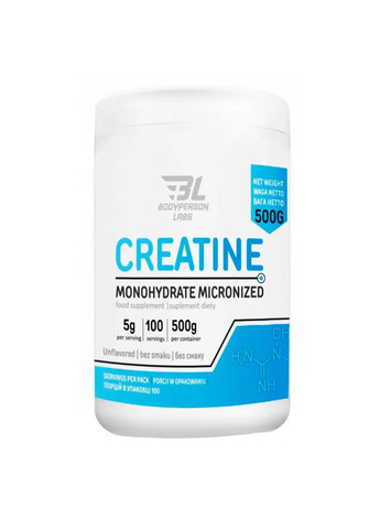Креатин моногідрат від Bodyperson Labs, 500 грам (Без смаку) – – це високоякісний креатин моногідрат у мікронізованій формі, що сприяє зростанню м’язової маси, підвищенню витривалості та покращенню відновлення після тренувань. Ідеальний вибір для спортсменів, які прагнуть досягти максимальних результатів. Особливості продукту: • Мікронізована формула – краще розчиняється та засвоюється організмом • Чистий склад – 100% креатин моногідрат без домішок та ароматизаторів • Універсальність – підходить для всіх видів спорту та рівнів підготовки Дія на організм: • Збільшення сили та витривалості – допомагає виконувати більше повторень і підвищує продуктивність • Прискорення відновлення – зменшує втому м’язів після інтенсивних навантажень • Набір м’язової маси – сприяє збільшенню об’єму м’язів за рахунок утримання води в клітинах • Енергетична підтримка – стимулює вироблення АТФ, що забезпечує вибухову силу під час тренувань Кому підходить: • Спортсменам та бодібілдерам для набору м’язової маси • Витривалим атлетам – бігунам, плавцям, велогонщикам • Тим, хто займається кросфітом або силовими видами спорту • Людям, які прагнуть покращити відновлення після тренувань Склад на порцію (5 г): • Креатин моногідрат (200 меш) – 100 грам Рекомендації щодо застосування: • Розчинити 5 г (1 мірна ложка) порошку в 200 мл води або іншого напою • Приймати 1 раз на день, бажано після тренування або вранці натщесерце у дні відпочинку • Для максимальної ефективності рекомендується курс 4-8 тижнів з подальшою перервою Bodyperson Labs Creatine Monohydrate – ідеальне джерело енергії для ваших м’язів! Забезпечує силу, витривалість і швидке відновлення без зайвих добавок. Вибір тих, хто прагне більшого!