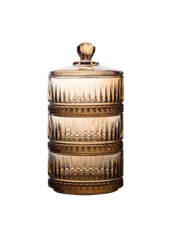Двоярусна скляна цукерниця з кришкою Ø 10 см Ця елегантна двоярусна цукерниця з товстого скла під кришталь стане не тільки стильним, але й практичним аксесуаром для вашого столу. Її вишуканий дизайн та прозорість матеріалу створюють атмосферу розкоші, надаючи інтер'єру нотки вишуканості та благородства. Такий аксесуар ідеально підходить для зберігання солодощів, фруктів та інших частувань, перетворюючи навіть просту чайну церемонію на щось особливе. Завдяки своїй двоярусній конструкції, цукерниця забезпечує зручне місце для організації різних видів частувань, оптимально використовуючи простір. Верхній рівень захищений кришкою, яка щільно закриває виріб, зберігаючи вміст свіжим і захищеним від зовнішніх впливів. Це особливо важливо для зберігання солодких ласощів, які потребують захисту від пилу та забруднень. Основні особливості та переваги: Стильний та елегантний дизайн, що нагадує кришталь. Зручна двоярусна конструкція для оптимального використання простору. Кришка, що забезпечує захист і збереження свіжості вмісту. Прозоре скло, яке дозволяє легко побачити, що всередині. Підходить для зберігання цукерок, фруктів, горіхів та інших частувань. Компактні розміри, що роблять цукерницю універсальним елементом декору. Ідеально підходить як для повсякденного використання, так і для святкових заходів. Текстурована поверхня, що надає виробу додатковий шарм. Товсте скло, яке гарантує довговічність та надійність. Характеристики: Матеріал: скло Діаметр: 10 см Висота: 15 см Додаткові елементи: кришка для захисту вмісту Ця скляна цукерниця не тільки практична, але й є стильним елементом декору, який прикрасить будь-який інтер'єр. Завдяки універсальному дизайну вона гармонійно впишеться як в сучасні, так і в класичні інтер'єри. Це ідеальний подарунок для будь-якого випадку, який не залишить байдужим жодного шанувальника краси та витонченості. Унікальність цієї цукерниці полягає в її практичності та естетичній привабливості, що дозволяє насолоджуватися нею протягом тривалого часу. Не упустіть можливість придбати цей стильний аксесуар для вашого дому!