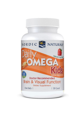 Nordic Naturals Daily Omega Kids - це дитячі жувальні цукерки з вмістом Омега-3 , необхідні для нормального розвитку мозку та його здорового функціонування, а також для підтримки зору. Необхідна доза корисних мікроелементів міститься в одній капсулі. Добавка рекомендується педіатрами, оскільки містить органічний рибний жир від компанії Nordic Naturals. Препарат проходить експертизи якості незалежними експертами і не містить токсинів. вказівкою лікаря. Вміст елементів у 1й порції 1 капсула Калорії 5 ккал Жири 0,5 г - насичені 0 г Всього Омега-3 340 мг - EPA (Ейкозапентаєнова кислота) 170 мг - DHA (Докозагексаєнова кислота) 120 мг - Інші Омега-3 50 мг Інгредієнти очищений жир глибоководних риб (з анчоусів та сардин), м `які гелеві капсули (желатин, гліцерин, вода, натуральний полуничний ароматизатор, натуральний полуничний ароматизатор, d-альфа токоферол, екстракт розмарину Виробник: Nordic Naturals; Форма випуску: Капсули; Кількість в упаковці, шт: 30; Кількість порцій, шт: 30; Зміст порції: 1 капсула; Вигляд: Омега 3; Пол: Жіночий, Чоловічий; Вікова категорія: Дитячі; Країна виробника: США; Призначення: Для імунної системи, Для загального оздоровлення, Для серцево-судинної системи