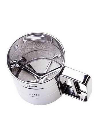 Кружка-сито — це чудова ємність для просіювання борошна. Кухоль складається зі сталевого корпусу з ситовим дном і ручки, всередині якої знаходиться пружина з нержавіючої сталі. За допомогою кружки-ситу ви зможете швидко просіяти борошно, крохмаль, манку, пшоно, цукрову пудру та інші дрібноподрібнені сипучі продукти. Її розмір становить близько 10.5 см в діаметрі, що робить її досить місткою для просіювання великих порцій борошна або інших інгредієнтів. Місткість кружки становить близько 250 мл, що дозволяє вам проводити просіювання невеликого об'єму інгредієнтів. Завдяки ручці-важелю рухається механізм, і крупа або борошно просівається через сито. При цьому кухоль не потрібно трусити, як звичайне сито і не просипляться жодного граму сировини. Просто насипаєте борошно в чашку, натискаєте на важіль, борошно сипеться в потрібну ємність, а не на стіл або навколо нього. Характеристики Матеріал: нержавіюча сталь Висота: 9.5 см Діаметр верху: 10.5 см Діаметр низу: 10 см Ширина з ручкою: 16 см Вага: 126 г Миття в посудомийній машині: так Країна-виробник товару: Китай