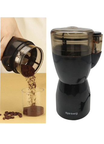 Компактна електрична кавомолка RB-2206 не займе багато місця на кухні і чудово підійде до будь-якого інтер'єру. Гострий сталевий ніж впорається з подрібненням кавових зерен за лічені хвилини і дозволить приготувати смачний і напій, що бадьорить, відразу на двох людей. Відмінний варіант для всіх кавоманів та просто любителів цього популярного напою. Прилад має прозору кришку, що дозволяє повністю контролювати процес приготування. Працює від електромережі 220 вольт. Електрокавомолка Rainberg RB-2206 потужна 600 W подрібнює кавові зерна, горіхи, насіння, а також крупи в борошно, цукровий пісок в пудру. Любите свіжомелену каву вранці? Чи потрібно подрібнити горіхи для смачної випічки? Кавомолка потужністю 600 Вт швидко і легко подрібнить ваші улюблені кавові зерна, горіхи або насіння.