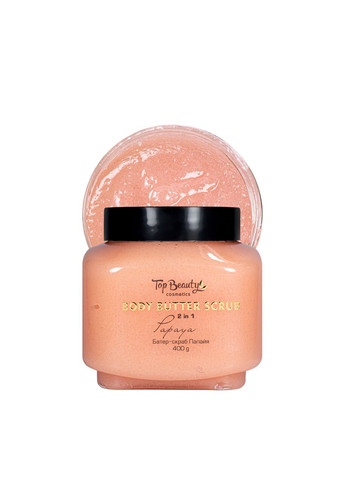 Баттер-скраб для тіла 2 в 1 Top Beauty Body Butter Scrub Papaya на основі олій кокоса й ши з ароматом папаї Скраб для тіла 2 в 1 Top Beauty з ароматом тропічної папайї, на основі олії, кокоса чудово очищає шкіру від ороговілого верхнього шару, прибираючи лущення і сухість, повертає їй гладкість, пружність і вологість. До складу скрабу увійшла молочна кислота, що допомагає підтримати здоровий pH епідермісу. Дрібні кристали цукрового скрабу для тіла ніжно, не травмуючи шліфує шкіру, миттєво роблять її шовковистою та дуже приємною на дотик. Активні компоненти пілінгу для тіла на основі натуральних олій живлять та тонізують, зволожують, підтягують шкірний покрив, насичуючи клітини вітамінами та антиоксидантами. Масляний скраб добре переноситься шкірою тіла та посилює мікроциркуляцію крові. Аромат екзотичної папайї дарує заряд бадьорості під час процедури очищення. Спосіб застосування: трохи масляного скрабу нанести на вологе тіло масажними рухами. Змити теплою водою. Для зволоження сухої шкіри залиште скраб на 5-10 хвилин, потім змийте водою. Вага: 400 г