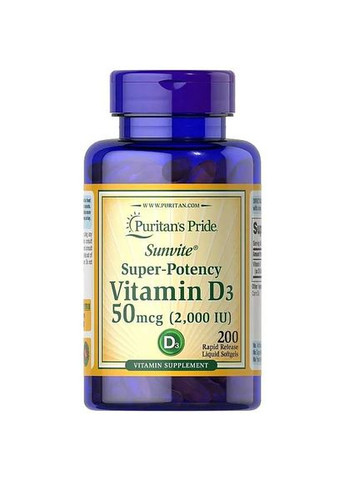 Вітамін D3 від Puritan's Pride, 2000 МО, 200 капсул — це потужна добавка, що містить 2000 МО холекальциферолу (вітаміну D3) в кожній капсулі. Він допомагає забезпечити оптимальний рівень вітаміну D в організмі, що критично важливо для нормального функціонування кісткової, імунної та нервової системи. Вітамін D3 сприяє засвоєнню кальцію та фосфору, підтримує здоров'я кісток, зубів і м'язів, а також знижує ризик судом та м'язових болей. Дія на організм: Вітамін D3 відіграє ключову роль у регуляції рівня кальцію в організмі, сприяючи його ефективному засвоєнню та збереженню в кістках і зубах. Він також допомагає підтримувати правильну роботу нервово-м'язової функції, зміцнює імунітет, покращує загальний стан організму. Дефіцит вітаміну D може призвести до ослаблення імунної системи, болів у суглобах, порушень у рості та розвитку кісток, а також до зниження м'язового тонусу. Кому підходить: Ця добавка підходить для дорослих, які хочуть підтримати здоров'я своїх кісток, зубів та імунної системи. Вона особливо корисна для людей, які перебувають у зоні ризику дефіциту вітаміну D — тих, хто не отримує достатньо сонячного світла або має проблеми з засвоєнням кальцію. Вітамін D3 також може бути корисним для жінок у період менопаузи або вагітності. Склад: Вітамін D3 (холекальциферол) — 50 мкг (2000 МО) на 1 капсулу. Рекомендації щодо вживання: Приймати по 1 капсулі на день, бажано під час їжі, для забезпечення оптимального всмоктування та ефективного засвоєння. Вітамін D3 від Puritan's Pride — це ефективна добавка для підтримки здоров'я кісток, зубів та імунної системи. Вона допомагає боротися з дефіцитом вітаміну D, покращує м'язову функцію та сприяє засвоєнню кальцію, забезпечуючи комплексну підтримку для здоров'я в будь-якому віці.