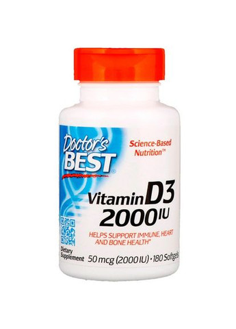 Вітамін Д3, Doctor's s Best, 2000 МО, 180 капсул Опис Science-Based Nutrition Допомагає підтримувати природні імунні реакції, здоров'я серця і кісток Харчова добавка Без ГМО, глютену та сої В останні роки дослідження підтвердили, що дефіцит вітаміну Д як у дітей так і у дорослих є масовим, що робить це однією з найважливіших медичних проблем. Більш того, дефіцит вітаміну D є першопричиною більшості хвороб таких як: рак, аутизм, діабет, м'язові болі, остеопороз, гіпертонія, розсіяний склероз, хвороби серця, астма, мігрень, екзема, псоріаз і багато інших. Основною причиною дефіциту вітаміну D є те, що ми не проводимо досить часу на сонці. Наші тіла синтезують вітамін D під впливом сонячного світла, але важко отримати оптимальну дозу, особливо у північних широтах протягом темних зимових місяців. До того ж, чим старше ви стаєте, тим більше ризик дефіциту вітаміну D. З віком шкіра не може синтезувати вітамін D так ефективно, як раніше, а нирки в меншій мірі здатні конвертувати вітамін D в його активну форму гормону. Вам також нелегко отримати достатньо вітаміну D зі свого раціону. Кращі джерела вітаміну Д: молоко і вівсяні пластівці, яйця, лосось, тунець, макрель і сардини. (На жаль, більшість збагачених вітаміном Д продуктів містять вітамін D2, форму, яка не так добре використовується організмом, на відміну від D3 , який організм виробляє під впливом сонця.) Дозування вітаміну встановлюється індивідуально і залежить від конкретної клінічної ситуації. Вітамін D3 від Doctor's s Best містить D3 (у вигляді холекальциферолу), необхідний організму для регулювання рівня фосфору і кальцію, які сприяють здоров'ю кісток, зубів і серця. Вітамін D3 виробляється в шкірі за рахунок поглинання сонячних УФ-променів і в обмежених кількостях надходить з їжею. Захист від сонця і кліматичні фактори можуть впливати на низький рівень вітаміну D3. Вітамін D3 корисний для імунної та серцево-судинної систем, щільності та структури кісток, а також для функціонування клітин. Він грає важливу роль в роботі більшості органів і систем організму і впливає на хімічні посередники імунної системи. Допомагає регулювати кількість кальцію і фосфору, необхідних для здоров'я кісток і зубів. Сприяє зміцненню імунної системи і серця. Рекомендації по застосуванню Рекомендації по застосуванню для дорослих. Приймати по 1 капсулі в день під час їжі або згідно з рекомендаціями лікаря-дієтолога. Інгредієнти Оливкова олія холодного віджиму, оболонка м'якою таблетки (бичачий желатин, гліцерин, очищена вода). Попередження Зберігати в сухому і прохолодному місці. Харчова цінність Розмір порції: 1 капсула Порцій в упаковці: 180 Кількість в 1 порції % від добової норми Вітамін D3 (у вигляді холекальциферолу) 50 мкг (2000 МО) 250% Відмова від відповідальності У зв'язку з тим, що виробник часто змінює дизайн упаковки та не завжди своєчасно надає нові фото, оновлення даних може відбуватися із затримкою. Наш інтернет-магазин робить все можливе, щоб зображення та інформація про продукцію були надані своєчасно та коректно. Навіть у випадках, коли маркування отриманої Вами продукції відрізняється від наданої на сайті, ми гарантуємо якість та оригінальність товарів. Ми рекомендуємо ознайомитися з інструкцією щодо застосування, вказаною на товарі, перед використанням, а не повністю покладатися на опис, наданий на сайті. Вся продукція, представле