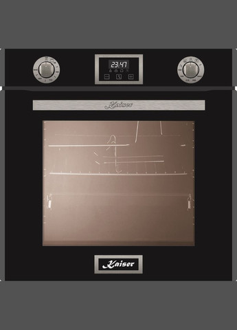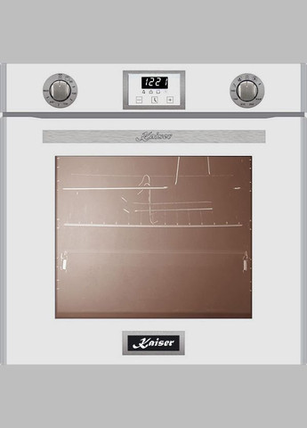 Вбудована електрична духова шафа Kaiser EH 6427 AD Дизайн Модельний ряд Art Déco Ручка дверей і металева фурнітура Antique Gold Art Déco - металева ручка, покрита екошкіра Antique Gold з опуклим гербом Панорамне внутрішнє скло з таблицею рецептів Особливість Тангенціальна система циркуляції Хромовані опорні рейки для дек 5 рівнів рейок Телескопічна система висування Teleskop - 1 рівень, опціонально до 3-х рівнів Обладнання 1 емальоване деко з Easy-clean протиалергічна емаль, легко очищається 1 багатофункціональна хромована решітка 1 камінь для піци-круглий Ø 34 см ( для хліба, булочок та піци. Забезпечує рівномірне випікання та хрумку скоринку) Управління Електронний сенсорний програматор Intelligent System з металевими поворотними джойстик-ручками Antique Gold Багатофункціональний LED-дисплей Комфорт XXL Багатофункціональна електрична духовка Multi 9 з піролізом 8 режимів обігріву Функція піролітичного очищення Easy-clean протиалергічна емаль, легко очищається Холодний фронт – 4- х шарове скло дверцят духовки Спеціальний THERMO-REFLECTIVE стекла Електронний таймер Електронний таймер-це короткостроковий таймер з перевіряється сигналом. Його можна використовувати для зручного програмування робочого часу печі. За допомогою кнопок ви можете вибрати відповідний час для початку і завершення режиму приготування. Робочий час буде відображатися на цифровому дисплеї. Циркуляційна система Забезпечує постійне охолодження внутрішньої частини духовки і дозволяє вбудувати прилади в кухонні меблі. Інфрачервоний гриль Інфрачервоний гриль ідеально підходить, якщо ви віддаєте перевагу готувати рибу, стейки або тости в духовці. Якщо вам подобається свіжий хліб, злегка відкрийте дверцята духовки або використовуйте вентилятор, щоб досягти кращих результатів. Система гарячого повітря Система гарячого повітря-зручне сучасне досягнення. Він складається з кільцевих радіаторів і високоефективних вентиляторів і забезпечує рівномірний розподіл гарячого повітря по всій порожнині печі. Температуру духовки можна встановити на 50-280 ° C, яка ідеально підходить для випічки тортів і печива. Режим приготування з використанням вентилятора скорочує час приготування, а також економить час і енергію. Ця система забезпечує істотно більш чисту духовку, запобігає злив жиру і соку і забезпечує помітно кращий смак. Легко чиститься-гіпоалергенна, екологічно чиста емаль Внутрішня частина духовки покрита легкою чистою емаллю. Емаль Кайзер має наступні характеристики: Гіпоалергенна Проста в догляді піролітична очищення Антибактеріальний Гігієнічний Міцне покриття з тривалим терміном служби Блиск, гладкість, стійкість до кольорів, стійкість до атмосферних впливів і температури Екологічно чиста Самоочисна функція-Pyrolyse Ця функція застосовується для швидкого очищення духовки. Температура духовки піднімається до 420 ° C і буде підтримуватися протягом 1 - 3 годин. На відміну від піролітичного очищення ваша кухонні меблі не піддається сильному тепловому удару. Піроліз забезпечує постійну і зручну очистку навіть у важкодоступних місцях, наприклад верхня і задня поверхні порожнини печі. Не потрібно витирати-запечені плями жиру і соусу можна легко видалити в одну мить! Для особливих в'їдаються плям найближчим часом розігрійте духовку і почистіть-плями зникнуть. Для видалення невеликих плям використовуйте м'яку щітк