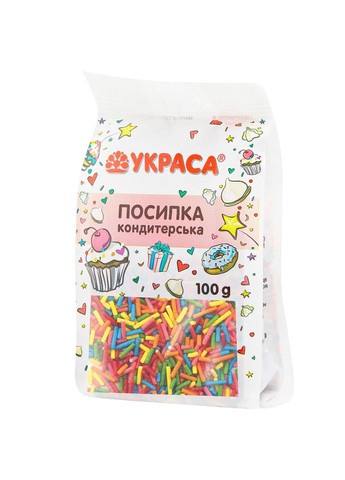 Посипка «Вермишель» це універсальна, харчова прикраса для декору кондитерських виробів, яка моментально надає декоративної привабливості виробу, не потребує значних фінансових та часових затрат, достатньо лише посипати посипкою виріб і десяток дрібних різнокольорових кульок створять веселу, різнобарвну, декоративну поверхню. Посипка цукрова декоративна «Нонпарель» - це харчовий, повністю готовий до вживання продукт, у вигляді суміші дрібних різнокольорових кульок діаметром 2-3мм, використовується для оздоблення та декору готових кондитерських виробів, тортів, тістечок, печива, десертів, а також досить популярний декор для прикрашання великодньої паски. Посипка ТМ «Украса» виготовлена з якісної сировини, має високу стійкість покриття, ідеально круглу глянцеву форму, рівномірну фракцію, широку гаму пастельних та яскравих кольорів. Чудово поєднується з кондитерськими прикрасами тм «Украса» та іншими видами кондитерської посипки.