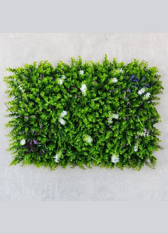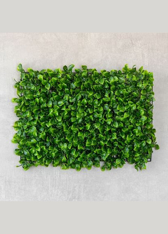 Довжина - 60 см, ширина - 40 см, висота - 5 см. На зворотній стороні панелі решітка з пластику та гачки для зручного кріплення. Декоративна панель зі штучної травки – це стильне та універсальне рішення для створення зелених стін як у приміщенні, так і на відкритому повітрі. Виготовлена з високоякісного синтетичного матеріалу, що імітує живу рослинність, вона забезпечує природний вигляд без необхідності догляду. Гнучка основа дозволяє легко монтувати панель на будь-які поверхні, а щільне переплетення зелені створює ефект густого живого покриття. Такий декор ідеально підходить для оформлення інтер’єрів, зон відпочинку, фотозон або ландшафтного дизайну.