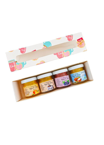 Подарунковий набір, у коробочці розміром 20*5*5 см, з подарунковою наклейкою до свята, і прикрашений атласною стрічкою. У наборі: - 50 грамм мед зі смородиною - 50 грамм мед з кавою - 50 грамм крем мед кокос-мигдаль - 50 грамм крем мед апельсин Ми можемо запакувати цей набір з наклейками, до таких свят: День учителя День Вихователя День Захисника України День закоханих Новий рік 8 березня День Святого Миколая День народження І на будь-яке свято. При корпоративному замовленні розробляємо наклейку з логотипом компанії.