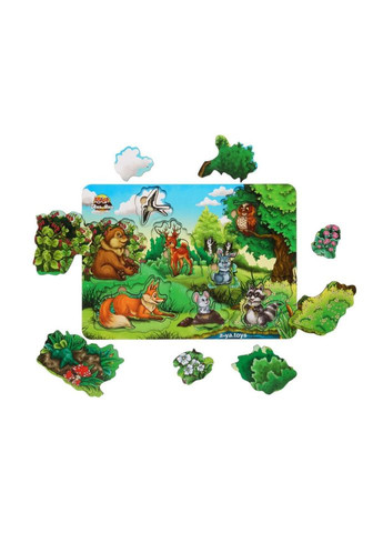 Двошарова гра-вкладиш. У нижній шар потрібно вкласти: ластівку, сову, зайчика, єнота, мишеня, лисицю, ведмедя і оленя, а в верхній: дерева, хмару, кущики і камені, де ховаються звірі, які мешкають в лісі. Поговоріть з дитиною про те, хто з тварин травоїдний, хто хижак; хто найвищий, а хто найважчий; у яких тварин пір'я, а у яких шерсть? Порахуйте тварин і придумайте їм кумедні імена.
