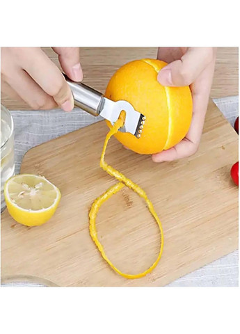 Апельсинова або лимонна цедра здатна надати будь-якій страві неповторного аромату і пікантної гостроти. Спеціальний ніж для цедри дозволяє акуратно зняти тільки верхній шар цитрусових шкірки, не торкаючись гіркої білої частини. Інструмент оснащений гострими отворами, які роблять рівні та тонкі смужки цедри. Їх можна використовувати як для приготування соусів, випічки та напоїв, так і для гарної прикраси десертів або коктейлів. Завдяки зручній металевій ручці ніж міцно лежить у руці і не ковзає під час роботи. Виріб легко очищається, не вбирає запахи та прослужить довгі роки. Ідеально підійде для професійних кухарів та любителів домашньої кулінарії. Характеристики: Матеріал: нержавіюча сталь Розміри: 165 × 37 × 27 мм Вага: 37 г Призначення: зняття цедри з цитрусових, нарізка декоративних смужок Догляд: легко миється вручну та в посудомийній машині Виробництво: Китай