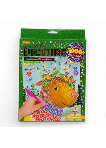 Зимова серія "Діамантова мозаїка" від ТМ " " це 4 яскраві дизайни для творчості. У наборі ви знайдете все необхідне для створення діамантової картини: картинку основу, кольорові камінці, стилус, клейову масу та інструкцію зі схемою складання. Форматрозмір набору: 20628518 мм Склад набору: картон целюлозний, папір крейдований, друк офсетний, поліпропілен, пластмаса, клейова маса, ламінаційна плівка. Комплектація: коробка 20628518 мм 1 шт.; картинка з клейовим шаром 200250 мм для декорації дімантами 1шт.; декоративні камінці в ПВХ пакетах (7пакетів 7 кольорів: жовті, блакитні, сріблясті, червоні, фіолетові, зелені, коричневі); стилус 1 шт.; пластмасовий лоток для сортування декоративних діамантиків; клейова маса для стилуса 2020 мм 1 шт.; паперова інструкція 1 шт. Кількість декоративних діамантів у наборі: 1000 Набір запакований у картонну коробку з європідвісом (друк з флуоресцентними фарбами; матова ламінація, тиснення фольгою). Характеристики: - Габарити: довжина: 29.5 - Габарити: ширина: 2 - Габарити: висота: 20.8 - Стан: нове - Вікова група: Від 3 років - Матеріал: Комбінований - Тип: Набір для творчості - Колір: Різні кольори - Упаковка: Без упаковки - Вид: Набори мозаїки для творчості - Вік: Від 3 х років - Гарантія: 14 днів - Стать: Унісекс - Країна реєстрації бренду: Україна - Країна-виробник товару: Україна