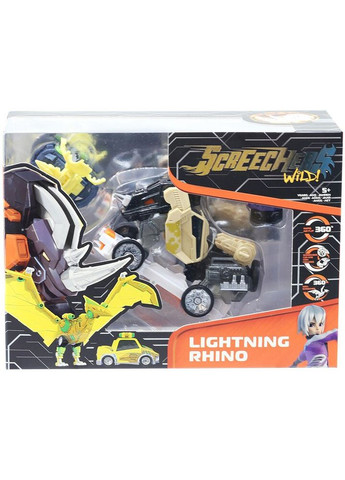 Screechers Wild! - це перші в історії іграшки-машинки, які роблять сальто та трансформуються у фантастичну істоту прямо в повітрі! Можете собі таке уявити? Зустрічайте новий 4 сезон! І неймовірних героїв із новою суперздатністю! Скричер Лайтнінг Райно робить переворот на 720 ° і трансформується в містичного носорога навіть без диска! Влаштовуйте неймовірні пригоди, видовищні бої та фантастичні перегони. Кожен скричер трансформується у тварину із суперсилою, потрібно тільки запустити машинку по рівній поверхні. Вона зробить перекид у повітрі і перетвориться! Для того, щоб трансформувати героя назад у машинку, потрібно акуратно притиснути всі деталі та закріпити, і Ви знову можете вступати у бій. Машинка-трансформер має міцну конструкцію з надійними кріпленнями і виконана з високоякісного матеріалу. Середній розмір іграшки: 10 см. У наборі: машинка-трансформер, колекційна картка. Саме час почати збирати всю колекцію "Диких Скричерів"! Беріть участь у баттлах - станьте крутим скричером! Шукайте нові серії про пригоди скричерів на YouTube. Рекомендовано для дітей віком від 5 років.