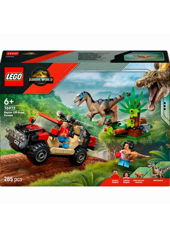 Дивовижні пригоди чекають на дітей і шанувальників фільму у конструкторі LEGO Jurassic World Втеча по бездоріжжю від раптора, подарунку із динозаврами для хлопчиків і дівчаток, натхненному фільмом Світ Юрського періоду: Відродження. Склавши ігровий конструктор із динозаврами, діти можуть розігрувати улюблені сцени з фільмів чи нові історії з мініфігурками Рубена й Ізабели Дельгадо, фігуркою улюбленця динозаврика Dolores і фігуркою велоцираптора зі щелепою, що відкривається. Набір конструктора містить: іграшковий позашляховик; пристрій для відстеження; кущ з ефектом «сюрпризу», який можна використовувати з велоцираптором; і безліч іншого. Додаток LEGO Builder стане путівником юних шанувальників динозаврів у зрозумілу пригоду з конструювання, дозволяючи дітям збільшувати й обертати моделі в 3D, зберігати набори й відстежувати прогрес. Набір можна поєднати з іншими наборами LEGO або конструкторами серії LEGO Jurassic World. Позашляховик сягає понад 15 см завдовжки. Набір містить 285 деталей. І дітям від 6-ти років, і дорослим сподобається ефект «сюрпризу», що додає додатковий вимір ігровому процесу.