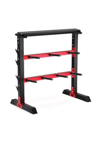 Втомилися від безладу з гантелями, штангами та дисками, які займають увесь тренувальний простір? Стійка для штанг і гантелей Hop-Sport HS-1007A - ідеальне рішення для тих, хто прагне організувати власний спортивний куточок професійно. Завдяки продуманій конструкції ця стійка для гантелей і дисків дозволяє компактно розмістити все силове обладнання, зберігаючи зручний доступ до інвентарю під час тренування. Міцна сталева рама витримує навантаження до 350кг, забезпечуючи стабільність і безпеку навіть під час активних занять. Якщо ви шукаєте універсальну стійку для штанги, гантелей та дисків, яка поєднує якість, практичність і стиль - Hop-Sport HS-1007A стане надійною основою вашого домашнього спортзалу. Основні характеристики: Модель: HS-1007A Країна реєстрації бренду: Німеччина Країна виробник товару: Китай Виробник: Hop-Sport Матеріал: Сталь, Порошкове покриття Максимальне навантаження: 350кг Розміри стійки: довжина 100см / ширина 49см / висота 102см Вага: 17кг Профіль: чорний - 45x45 мм, червоний - 38 x 38 мм 7 тримачів для дисків 4 тримача для грифів Довжина полиці для гантелей: 100см Відстань між поличками: внутрішня - 12см, зовнішня - 24см Гарантія: 24 місяці Функціональність і комфорт у кожній деталі Обираючи стійку Hop-Sport HS-1007A, ви обираєте продуманість у кожному елементі. Ця модель створена для зручності, організації та безпеки під час тренувань, щоб ви могли зосередитися лише на результаті. З цією стійкою ви отримуєте: комфорт тренувань - ви зможете швидко змінювати диски або гантелі без зайвих зусиль; безпеку під час зняття та встановлення дисків - міцна конструкція та ергономічне розміщення тримачів запобігають випадковому падінню; порядок у вашому домашньому спортзалі - усе має своє місце, що створює відчуття акуратності та професійного простору. Полиця для гантелей У верхній частині стійки Hop-Sport HS-1007A розміщена металева полиця для гантелей довжиною 100см, яка дозволяє зручно та компактно розташувати кілька пар гантелей різної ваги. Завдяки оптимальній ширині і надійній конструкції вона забезпечує легкий доступ до інвентарю, не займаючи зайвого простору. Полиця ідеально підходить для впорядкування гантелей, створюючи комфортні умови навіть у невеликих тренувальних зонах. Поверхня обладнана спеціальними протиковзкими накладками, що гарантують безпечне розміщення гантелей і запобігають їх випадковому зісковзуванню. Міцна сталева основа витримує значне навантаження, не деформується з часом і забезпечує довговічність використання. Це надійне рішення, яке поєднує ергономічність, стійкість і акуратний зовнішній вигляд вашого домашнього спортзалу. Стрижні для дисків Стійка HS-1007A обладнана 7 стрижнями (довжиною 20см і діаметром 25 мм кожен), на яких ви легко можете розмістити всі свої диски. Також вони мають спеціальні гумові фіксатори, які надійно захищають диски від будь-якого механічного дотику з каркасом стійки. Кріплення для грифів На стійці HS-1007A одночасно можна зберігати цілих 4 грифи. Завдяки зручній конструкції грифи розташовуються так, що користувач під час тренування легко і швидко зможе вибрати потрібний.