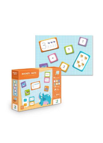 Вивчаємо математику із яскравими магнітами. Магніти Математика – магнітна планшетка, підставка під неї, карти для навчання, магнітні елементи з цифрами, тваринами та прикладами. Це ж подвійна користь – дитина весело проводити годину і вчитиметься рахувати швидко. Ви можете грати лише з картками, вчитися писати чи додавати приклади із магнітів. Магнітні ігри сприяють розвитку дрібної моторики, уваги та уяви, мотивують дітей вигадувати креативні шляхи вирішення проблем та просто додають веселощів. Гра може стати улюбленою розвагою усієї батьківщини. Комплектація: 139 магнітних елементів, 80 карт із завданнями, магнітна дошка, сухостиральний маркер. Розмір упаковки: 23 x 31 x 6 см. Вік: 5 Країна реєстрації бренду: Україна; Виробник: DoDo Toys; Доставка: Відправлення протягом 1-2 робочих днів; Виробник: DoDo Toys; Країна-виробник товару: Україна; Габарити: ширина: 23; Габарити: висота: 6; Габарити: Довжина: 31; Вес товару: 0; Вид: Розвиваючі; Вік: Від 5-ти років; Матеріал: комбінований; Тип: магнітні; Торгова марка: DoDo Toys; Колір: Різні кольори; Стать: Унісекс; Упаковка: картонна коробка; Вікова група: Від 5 років