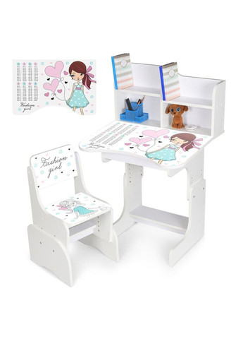Дитяча парта з надбудовою та стільцем Bambi N 2071 відмінно підійде для виконання шкільних завдань, читання книг та занять творчістю. Вона обладнана зручним ящиком для зберігання необхідного приладдя дитини та надбудовою над столом. Стіл та стільчик регулюються по висоті. У нашому магазині Ви можете купити парту з надбудовою та стільцем Bambi N 2071 і надати своїй дитині власне робоче місце. Характеристики дитячої парти з надбудовою та стільцем Bambi N 2071: Парта має стійку конструкцію. Висота парти регулюється в 5 положеннях. Обладнана ящиком для зберігання шкільного приладдя та надбудовою з поличками над столом. На стільниці таблиця множення. Предбачена підставка для ніжок. Стілець входить до комплекту. Висота стільця регулюється в 4-х положеннях. Розміри парти (ШхГхВ(до стільниці): 69х59х62-73 см. Висота з надбудовою: 102-113 см. Розмір стільниці: 69х44,5 см. Розміри стільця (ШхГхВ): 36,5х40х58-67 см. Розміри сидіння (ШхГ): 33х30 см. Висота до сидіння: 28-37 см. Матеріал: ДСП.