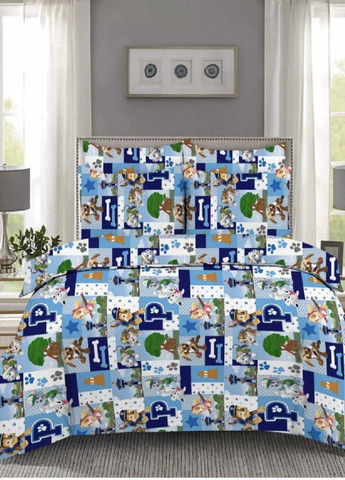 Комплект дитячої постільної білизни виготовлений з натуральної тканини Бязь Голд (100% бавовна), характеризується відмінною якістю, гіпоалергенністю, добре вбирає вологу, оптимізує температуру і пропускає повітря. Завдяки високій щільності тканини, білизна стійка до механічних пошкоджень, довго зберігає насиченість кольору та витримує багато циклів прання без зміни своїх характеристик. Водночас виріб залишається м'яким, а синій колір та насичений принт комплекту з зображенням улюблених героїв мультфільму "Щенячий патруль" обов'язково сподобається вашій малечі, викличе масу позитивних емоцій і зробить її сон ще приємнішим. Комплектація: Підковдра 150х220 см - 1 шт, Простирадло 150х220 см - 1 шт, Наволочки 70х70 см - 2 шт.