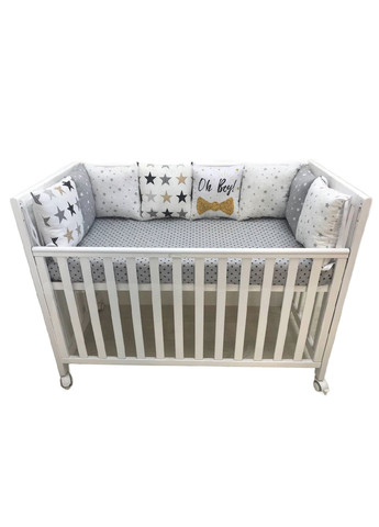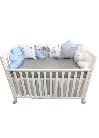 Дитячий набір в ліжко забезпечує комфортний сон дитини. Наматрацник і ковдра роблять сон м'яким і приємним, а бортики захищають дитину від ударів і падінь. Комплектація набору: наматрацник на гумці на матрац 120*60см ковдра з плюшем 100*80см (демісезонна утеплена) Наповнювач - синтепух, ковдра тепла, легка та дуже ніжна; бортики на три сторони ліжечка. Наповнювач бортиків - гіпоалергенний холлофайбер. Всі елементи, на яких є вишивка, вишиті на професійній вишивальній машині. Всі бортики мають по 4 міцних стрічки по боках для надійного кріплення до ліжечка. 💛Переваги дитячого набору в ліжечко 💛 Безпека: Дитячий набір в ліжко є безпечним для вашої дитини. Наматрацник і ковдра не мають гострих кутів та небезпечних матеріалів, бортики мають м'який наповнювач та забезпечені стрічками для міцного кріплення до ліжка. Гігієна: Дитячий набір в ліжко легкий в підтримці чистоти. Наматрацник, ковдру і бортики можна використовувати в пральній машині при температурі 30-40.°C та прасувати праскою або паром (не по плюшу, тільки по бавовні) Дизайн: Усі набори виготовлені на нашому виробництві, дизайни придумані нашим дизайнером, ідеї втілені в життя нашими професійними швами. Тому кожен набір є оригінальним, його можна купити тільки у нас або наших партнерів по продажу.