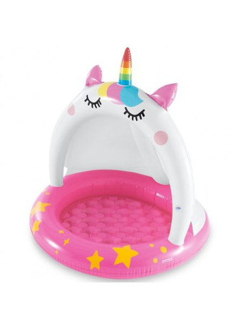 Огляд Басейн надувний Intex 58438 NP Єдиноріг, 102х102см (2+, вага 7.33кг) "Катікорн" - дитячий надувний басейн 102х102 см, 45 л, від 1 до 3 років від фірми Intex - все, що потрібно дитині в літню спеку. Передбачено навіс від сонця. Глибина - невелика, відмінно підійде для дитини 1-3 років. Яскрава і незвичайна форма басейну у вигляді єдинорога привернуть увагу навіть найпримхливіших малюків. Подарує цілющу прохолоду, захистить від сонця. Можна швидко перетворити на ігровий центр, якщо заповнити ємність пластиковими кульками. Низькі, широкі борти заввишки 13 см не дозволять дитині впасти. Матеріал – міцний, гіпоалергенний, безпечний вініл. Прослужить довго, не втратить форму.