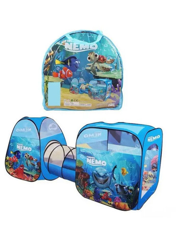 Дитячий ігровий намет з тунелем Рибки Немо 8015 НМ Дитячий ігровий намет «Рибки Немо 8015 НМ» з тунелем – це незабутній та захоплюючий ігровий комплекс для дітей. Розміри намету становлять 270 х 92 х 92 см. Вона оформлена у тематиці підводного світу із зображенням рибок Немо. У комплект намету і входить тунель, що з'єднує їх, що робить гру ще цікавіше. Легко збирається та підходить для будинку чи вулиці. Розміри намету становлять 270 х 92 х 92 см.