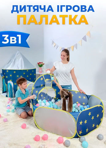 Розвиваючий дитячий комплекс 3в1: намет з тунелем та сухим басейном для кульок – швидкозбірна конструкція з каркасом зі з'єднаних яскравих елементів. Легко організує майданчик для веселих ігор будинку в дитячій кімнаті або на повітрі на дачі, пляжі, в саду, у дворі і дарує дітям позитивні емоції та години розваг. Великий дитячий намет виготовлений з міцної нейлонової тканини та поліетилену: гіпоалергенний, водовідштовхувальний, легко миється, швидко сохне. Будан має вставки з сітки, що забезпечує циркуляцію повітря, захищає від комах - непосид в ньому дуже затишно. Всі три частини складного містечка можна скріпити як конструктор і розгорнути м'який вуличний спортивний майданчик для активних занять. Кольоровий тунель з'єднує басейн і будиночок великого розміру, перетворюючись на справжній лабіринт для повзання туди-назад - тренує спритність, швидкість, гнучкість. Дитячий комплекс - відмінне рішення ігрового місця для доньки та сина та супер подарунок та іграшка хлопчику чи дівчинці. Кульки до комплекту не входять