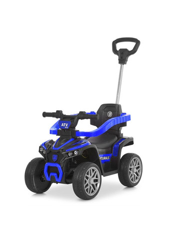 Bambi Racer M 6123EBLR - багатофункціональний дитячий квадроцикл формату 3-в-1: Каталка для самостійних поїздок дитини. Толокар (відштовхування ногами). Каталка з батьківською ручкою для повного контролю руху. Модель оснащена електроприводом (1 × 25 Вт, акумулятор 6 V 4,5 Ah) і радіокеруванням 2,4 GHz, що дає змогу батькам дистанційно задавати напрямок. Прогумовані колеса EVA забезпечують тихий хід і хороше зчеплення, а м'яке сидіння обтягнуте екошкірою. Інтерактивні функції включають Bluetooth-модуль, MP3-плеєр, USB і TF-слот, а також світлові ефекти фар і музичні мелодії. Характеристики Параметр Значення Тип електроквадроцикл, каталка-толокар (3-в-1) Потужність двигуна 1 × 25 Вт Акумулятор 1 × 6 V 4,5 Ah Радіокерування 2,4 GHz Колеса EVA Матеріал сидіння екошкіра Максимальне навантаження до 25 кг Музика/світло є Аудіо-інтерфейси Bluetooth, USB, TF, MP3