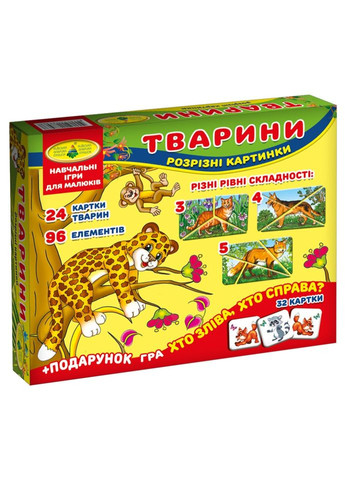 Яскрава захоплююча настільна гра "Тварини. Розрізні картинки" в кор. 87468, призначена для діточок старше трьох років, не розчарує Вашого маленького шукача пригод. Набір української торгової марки Енергія Плюс українською мовою доповнений красивою, подарунковою коробкою, і включає в себе всі речі для цікавого проведення часу з Вашим малюком. У процесі виконання завдання Ваша дитина буде вчитися самостійно логічно мислити, розвине просторову уяву, навички запам'ятовування, сприйняття і наочно-образне мислення. Поєднуючи деталі гри між собою, знаходячи правильні відповіді і рішення, Ваш допитливий малюк поліпшить координацію рухів, велику і дрібну моторику пальчиків. Цікава фірмова гра дозволяє Вашій дитині в ігровому форматі покращити комунікативні і соціальні навички спілкування, розширює кругозір і поповнює словниковий запас. Характеристики: Габарити: довжина: 21 Габарити: ширина: 3 Габарити: висота: 17 Стан: нове Вікова група: Від 3 років Матеріал: картон Колір: Різнобарвний Упаковка: Картонна коробка Призначення: Для дітей Вік: Від 3-х років Жанр: Розвиваючі Стать: унісекс Країна-виробник товару: Україна