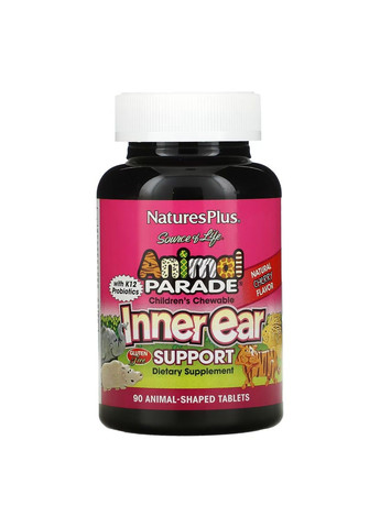NaturesPlus, Animal Parade, жувальні таблетки для дітей, для здоров’я внутрішнього вуха, вишня, 90 таблеток у формі тварин Дієтична добавка. Не є лікарським засобом. Опис - Ароматизатор «Вишня» та інші натуральні ароматизатори - Без цукру - Без глютену - Підтримка імунітету - Підтримка здоров’я вух Дитяча жувальна добавка для підтримки здоров’я внутрішнього вуха. Слух надзвичайно важливий для здорового розвитку дитини, а підтримка здорового балансу пробіотиків може сприяти оптимальному імунному захисту внутрішнього вуха. Добавка для здоров’я внутрішнього вуха для дітей Animal Parade® допоможе вам у цьому. Ця добавка створена для підтримки балансу мікрофлори внутрішнього вуха та містить ключовий пробіотик — слинний стрептокок (S. salivarius) K12, а також ацидофілус і суміш екстрактів ромашки й дивини ведмежої. Смачні жувальні таблетки у формі тварин зі смаком тропічних фруктів допомагають підтримувати здоров’я внутрішнього вуха легко та весело! Поживна цінність Розмір порції: 2 жувальні таблетки у формі тварин Порцій в упаковці: 45 Кількість в 1 порції % від добової норми для дітей від 1 до 3 років % від добової норми для дорослих і дітей віком ≥ 4 років Калорії 5 Усього вуглеводів 2 г 1 %** <1 %*** Цукровий спирт (ксилітол) 2 г † † ацидофільні лактобактерії (Lactobacillus acidophilus) (2 млрд життєздатних клітин‡) (на основі фруктоолігосахаридів [ФОС] пребіотична клітковина 150 мг † † Streptococcus salivarius K12 (1 млрд життєздатних клітин‡) 10 мг † † ** Відсоток від добової норми за умови споживання 1000 калорій на день. *** Відсоток від добової норми за умови споживання 2000 калорій на день. † Добову норму не визначено. ‡ На момент виробництва. Рекомендації із застосування Дітям віком від 2 років приймати по дві жувальні таблетки один раз на день. Після відкриття упаковки продукт слід зберігати в холодильнику.