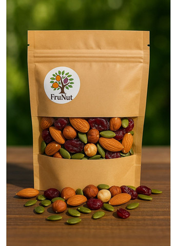 Цей мікс поєднує користь горіхів, ягід і насіння, створюючи збалансований та поживний перекус. Хрусткі мигдаль і фундук багаті на вітамін Е, кальцій і магній, що підтримують здоров’я серця й кісток. Журавлина додає яскравої кисло-солодкої нотки та антиоксидантів для імунітету. Насіння гарбуза збагачене цинком, залізом і рослинним білком, що зміцнює організм і дарує енергію. Ідеальний вибір для перекусу вдома, на роботі чи у дорозі. Мигдаль – 60 г Фундук – 40 г Журавлина в’ялена – 40 г Насіння гарбуза – 60 г Корисні властивості: Багатий клітковиною – сприяє здоровому травленню.Джерело калію та магнію – для серця та нормалізації тиску.Містить залізо – профілактика анемії.Високий вміст антиоксидантів – захист клітин від старіння., Поживна цінність (на 100г): Калорійність, Зберігання: Зберігати у сухому прохолодному місці при температурі до +20°C у герметичній упаковці. Уникати сонячних променів і вологи. Після відкриття спожити протягом 2–3 тижнів.