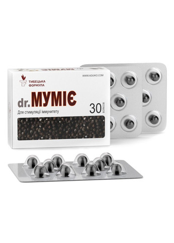Пропонуємо універсальний оздоровчий засіб Dr. Муміє» у зручному для застосування вигляді із перевіреної, сертифікованої, якісної сировини. Муміє болюси для стимуляції імунітету Рекомендується для стимуляції серцевої діяльності, при лікуванні гастриту та виразки шлунка, для прискорення загоєння ран, для зрощення кісткової тканини при переломах, для підвищення лібідо, посилення сексуального потягу, для поліпшення апетиту, сну, для підвищення імунітету та як загальнооздоровчий засіб. Муміє впливає на організм людини насамперед через активізацію обміну речовин, посилення регенерації тканин та участь у процесі синтезу на клітинному рівні. Внаслідок багатовікової практики його застосування було виявлено, що муміє дуже ефективно впливає: - на печінку та шлунок (при виразці та гастриті), - при запаленнях різних відділів дихальної системи (при бронхіальній астмі, пневмонії, туберкульозі), оскільки містить речовину, подібну до дії пеніциліну; - допомагає відновлювати нервову систему (при стресах, порушенні мозкового кровообігу), відновлює сон, покращує апетит, знімає дратівливість; - допомагає при загоєнні кісток при переломах, оскільки стимулює регенерацію та обмін речовин; - при запаленнях суглобів та хребта (артрит, радикуліт, остеохондроз); - при відновленні після тяжких захворювань та хірургічного втручання, як загальнозміцнююче, для підняття сил; + - при проблемах із потенцією, підвищує лібідо; - при порушеннях зору (глаукома, катаракта); - при систематичних головних болях; - Захворювання серця. Склад: муміє Спосіб прийому: приймати натще перорально, запиваючи водою, за 30 хвилин до їди 2-3 рази на день: для загального зміцнення організму дорослим - по 2-3 болюси, дітям від 5 до 10 років - по 1 болюсу 1 раз на день. У лікувальних програмах – дорослим – до 5 болюсів, дітям 5-10 років – по 1 болюсу перорально 2-3 рази на день до їди. Курс прийому – 14 днів, потім зробити перерву на 10 днів і за необхідності повторити курс Протипоказання: Оскільки продукт є повністю натуральним