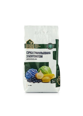Переваги сірки гранульованої: Високий вміст сірки – 90% у доступній формі Бентоніт забезпечує повільне розчинення та тривалу дію Покращує засвоєння поживних елементів, особливо азоту Природний захист від грибкових хвороб Відновлює ґрунти після інтенсивного землеробства Підвищує врожайність на 20–30%. Сірка необхідна для: Вирощування ріпаку, гірчиці, капусти, цибулі, часнику, кукурудзи, бобових, зернових, цукрових буряків, ягід. Рослин, що потребують високого білкового обміну. Поліпшення ґрунтів з низьким вмістом сірки або після тривалої експлуатації. Одної упаковки (3 кг) вистачає орієнтовно на 100–300 м² Не збільшуйте рекомендованих доз, це може привести до погіршення врожаю, або втрати рослини! Заходи безпеки: потрібно дотримуватись загальних заходів особистої гігієни, уникати потрапляння на слизову оболонку, після використання ретельно вимити руки та інші поверхні тіла, які контактували з добривом. Умови зберігання: добриво зберігати у сухих приміщеннях окремо від продуктів харчування та кормів для тварин, в недоступних для дітей місцях. Уникати довготривалого попадання сонячних променів на пакування.