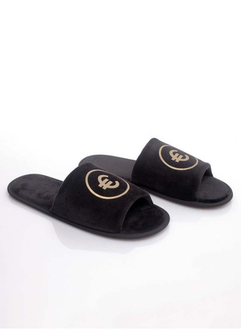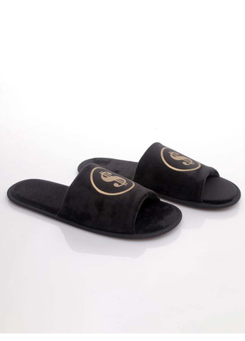 Домашні капці Family story Флекс відкриті чорні із зображенням значка Долар золотого кольору. Дана модель виконана на ЕВА підошві. Верхня частина та устілка - м'який велюр. Модель - унісекс, підходить як чоловікам, так і жінкам.