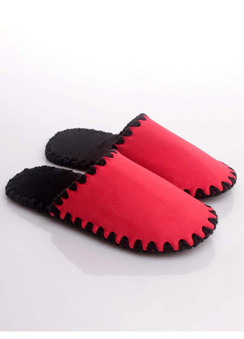 Домашні капці червоного кольору із закритим носком. На верхній частині - еко-замш, устілка - м’який велюр. Капці дуже добре переносять багаторазове прання у пральній машинці. Надзвичайно зручні, невагомі та безшумні.