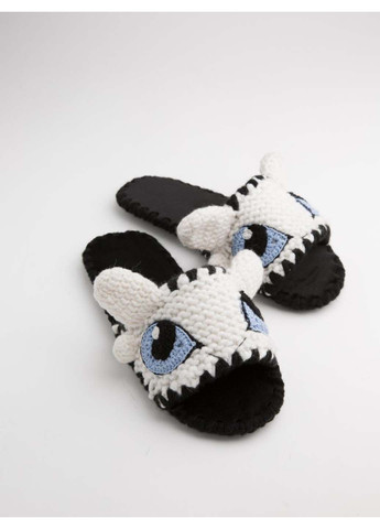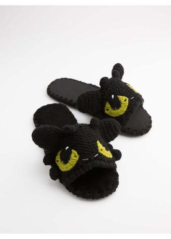 Домашні капці повністю ручної роботи з мордочкою Беззубика. Дана модель є у наявності на ЕВА-підошві. В своїй основі капці складаються із фетру, устілка виконана із мякого велюру, а сама мордочка в’яжеться руками нитками із вовни. Взуття підлягає пранню в пральній машинці на делікатному режимі.
