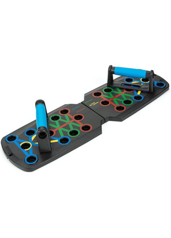 Багатофункціональний тренажер для віджимань Push Up JT-006 з кольоровою розміткою зміцнює та формує всю верхню частину тіла (груди, плечі, спину та руки). Кожному кольору відповідає певна група м’язів (синій – груди, червоний – плечі, жовтий – спина, зелений – трицепси). Можливість змінювати положення та кут упору дозволять максимально задіяти необхідні м’язи. Тренажер для віджимань Push Up JT-006 підходить для спортсменів різних рівнів підготовки. Новачку під силу виконати на ньому вправи для грудей та спини, а також виправити поставу. Заняття на дошці сприяють спалюванню калорій та ефективно формує м’язи верхньої частини тіла. Тренажер можна скористатися як вдома, так і на відкритому повітрі. Невелика вага дозволяє при необхідності брати його із собою. Переваги: Портативний, легко монтується та демонтується Складаний дизайн значно зменшує площу зберігання та загальну вагу. Знімна ручка для зручного перенесення та тренувань. Простота використання, без обмеженого часу та місця. Різні кольори поєднують у собі тренування різних частин тіла. Характеристики стійки для віджимань: Габарити: 65х19х9 см Вага: 1,3 кг Матеріал: якісний пластик. Для 4-х груп м’язів: спина, плечі, біцепс, трицепс Особливості: Антиковзне покриття дошки. Комплектація: Дошка: 1 шт. Упори: 2 шт.