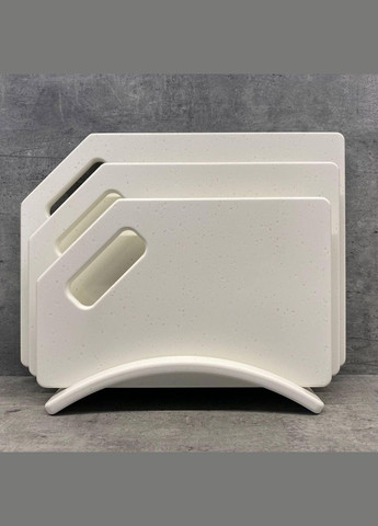 Ультрасучасні обробні досточки зі штучного каменю. За своїми характеристиками в рази перевершує низку інших матеріалів.- Гладкий, теплий і приємний на дотик- Легкий у догляді та відновленні початкового стану виробу- Морозостійкий- Непористий- Стійкий до плям і бактерій, не вбирає і не виділяє запахів, вологостійкий- Не токсичний- Не залишає слідів від продуктів харчування- Не дає радіаційного фону- Має властивості природного каменю- Твердий і стійкий до подряпин- Термостійкий- Витримує нагрівання до 120 градусів, критичний нагрів - 160 градусів- Ударостійкий- Критична висота падіння кулі масою 500 грам - 120 см- Стійкий до дії сонячного світла- Стійкий до впливу побутових засобів для чищення- Екологічно чистий матеріалРозміри:Велика дошка 345*260 ммМаленька дошка 305*220 ммПідставка 260*95 ммТовщина 12 мм