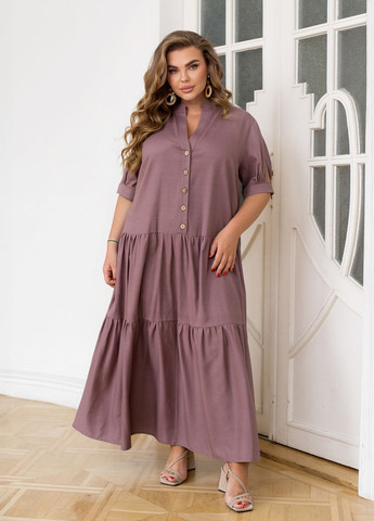 Матеріал Поліестер, Льон / Колір Рожево-ліловий / Фасон Кльош, А-силует, Оверсайз, Сукня-сорочка / Довжина виробу Міді та нижче коліна / Стиль Повсякденний, Кежуал