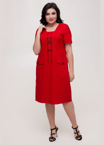 Літня сукня напівприлеглого силуету з льону кольору джинс. Тканина майже не тягнеться. На талії є куліса, що підкреслює фігуру. В бічних швах по низу - резинка. Рукав короткий з "крапелькою" та ґудзиком. Справа на пілочці - накладна кишеня-листочка, зліва на грудях - накладна кишеня. Універсальний варіант для повсякденного гардеробу, зустрічей та прогулянок. Доступні розміри: 52-62. Характеристики: Тип тканини: льон - легка, дихаюча тканина з низькою розтяжністю. Склад тканини: льон 60%, поліестер 40% - забезпечує практичність та комфорт. Довжина рукава: 24 см Довжина виробу по спинці: р. 50, 52 - 108см; р. 54, 56 - 112см; р. 58, 60, 62 - 116см Заміри готового виробу: 50 розмір: Обхват грудей - 102 см, обхват талії - 102 см, обхват стегон - 116 см; ширина рукава - 38 см; ширина плечей - 40 см. 52 розмір: Обхват грудей - 106 см, обхват талії - 104 см, обхват стегон - 120 см; ширина рукава - 40 см; ширина плечей - 41 см. 54 розмір: Обхват грудей - 112 см, обхват талії - 112 см, обхват стегон - 124 см; ширина рукава - 41 см; ширина плечей - 42 см. 56 розмір: Обхват грудей - 118 см, обхват талії - 118 см, обхват стегон - 128 см; ширина рукава - 42 см; ширина плечей - 43.5 см. 58 розмір: Обхват грудей - 122 см, обхват талії - 122 см, обхват стегон - 132 см; ширина рукава - 44 см; ширина плечей - 44.5 см. 60 розмір: Обхват грудей - 126 см, обхват талії - 126 см, обхват стегон - 136 см; ширина рукава - 45 см; ширина плечей - 45 см. 62 розмір: Обхват грудей - 130 см, обхват талії - 130 см, обхват стегон - 140 см; ширина рукава - 46 см; ширина плечей - 45.5 см.