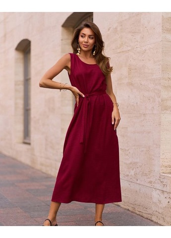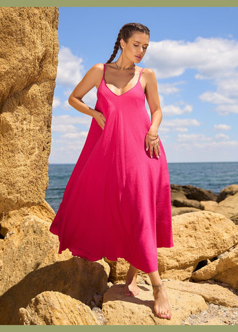 Льняна сукня з натуральної тканини має вільний А-силует, що дає змогу з комфортом її носити.Зверху класичний комір стійка. Короткі рукави з гумкою на манжетах, фасону реглан. Низ сукні прикрашений воланом, який надає сукні об'єму. По боках дві функціональні кишені у швах. У комплекті йде текстильний пояс в тон сукні, який дозволяє зробити акцент на талії. Застібається сукня на низку ґудзиків спереду.