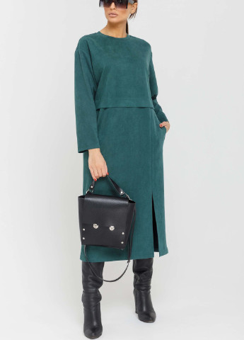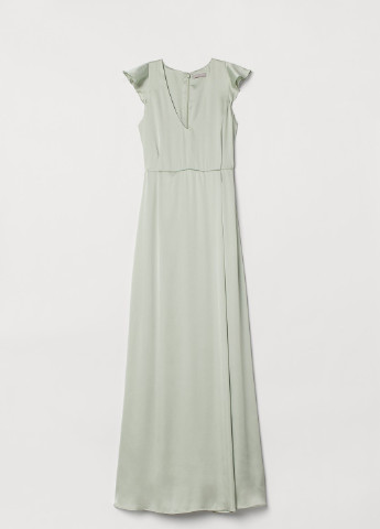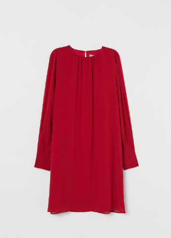 Коротка сукня з повітряного шифону з круглим вирізом горловини зі складанням та розрізом на гудзику на шиї ззаду. Довгий рукав у складку з ґудзиками на манжеті. Підкладка.
