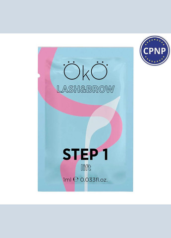 Засіб №1 для ламінування вій та брів OKO STEP 1 LIFT СЕРТИФІКОВАНО CPNP (Cosmetic Products Notification Portal) OKO STEP 1 LIFT - це перший етап ламінування вій або довготривалої укладки брів. Складник має лужне середовище та відповідає за руйнування дисульфідних зв'язків. Засіб розпушує структуру волосся, завдяки чому активні компоненти препарату легко проникають всередину. Можно використовувати під плівкою або без неї. Під плівкою реакція проходить швидше, вона допомагає впоратися з кучерявими волосками, укласти їх у потрібному напрямку. Одного саше засобу №1 вистачає на 4-5 процедур ламінування вій, або на 3-4 процедури довготривалої укладки брів. Завдяки щільній консистенції продукт дуже економічний. Виготовлено в Італії Обсяг: 1 мл