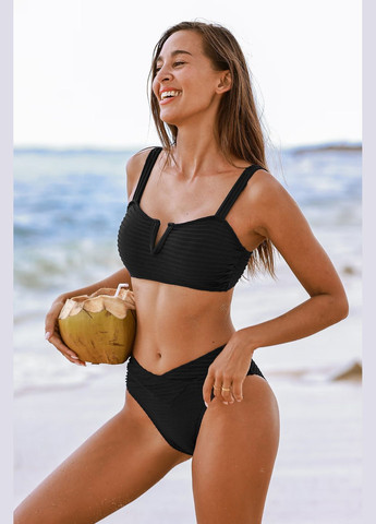 Доповніть свій пляжний стиль нашим комплектом із структурованого бікіні-топу та плавок з V-подібним вирізом. Виготовлений із фактурної тканини, цей комплект із двох предметів має V-подібний крій та фігуру, що підкреслює V-подібну талію, що забезпечує стильний образ для ваших літніх пригод. Кругла горловина з V-подібним дротом Регульовані бретелі М'які чашки, що знімаються. Застібка на гачок позаду. V-подібний виріз на талії до стегон Стандартний розріз ноги Можливе пошкодження бирки