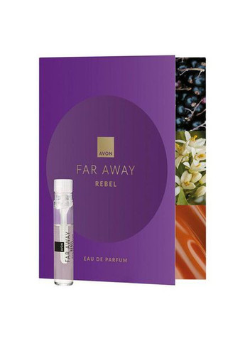 Листівка із пробним зразком Avon Far Away Rebel, 0,6 млСмілива і чуттєва, східно-квіткова композиція для жінокОпис товаруAvon Far Away Rebelпарфумована вода для жінокПочаткові ноти: лікер із смородини, червоні фрукти, сливаНоти серця: апельсиновий цвіт, конвалія, жасмин СамбакБазові ноти: пачулі, солона карамель з шоколадом, бурштинСпокусливий Far Away Rebel від Avon - це аромат для загадкових та чуттєвих жінок. Аромат відкривають смородиновий лікер та соковиті червоні фрукти. Нота серця представлена квітковими акордами апельсина, конвалії та жасмину. Вся композиція доповнена солоною карамеллю, солодким шоколадом і теплим бурштином. Апетитний аромат, що розпорошить навколо Вас спокусливу ауру. Ідеально підходить для щоденного використання та особливих випадків.Стан продукту:новийТермін придатності:відповідає інформації на упакуванніСпосіб використанняНоти ароматуAvonНаносити на шкіру з відстані близько 10-20 см, після цього дозволити парфуму поглинутися у шкіру – не розтирати. Аромати потрібно наносити на зап'ястя, скроні, шию, згини колін і ліктів, а також зону декольте. Крім цього, потрібно пам'ятати про те, щоб не використовувати аромат у надмірній кількості. Достатньо двох-трьох натискань, щоб запах був відчутним та приємним.