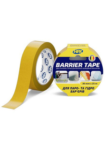 HPX Стрічка двостороння для ізоляційних матеріалів 30мм*25м прозорий BAR3025, INRUC0020243025000 BARRIER TAPE - двостороння клейка стрічка для ізоляційних матеріалів, наприклад паробар'єрів або гідробар'єрів. Скотч армований діагональною сіткою. Виріб призначений для з'єднання полотен матеріалів різних торгових марок, а також для герметизації місць примикання полотен матеріалів до елементів покрівлі, каркасних стін, перекриттів. Стрічка BARRIER TAPE демонструє високу початкову адгезію як за кімнатної, так і за низьких температур. Вона чудово склеює PE та PP плівки, а також сильнопористі та нерівні матеріали. Тип клею: каучуковий. Носій: тканина. Максимальна температура експлуатації: 90°C. Сила адгезії: 25 Н/25 мм. Сила на зсув: 6,5 кг/см2. Товщина: 0,22 мм. Артикул INRUC0020243025000 Модель (марка) BAR3025 Матеріал тканина/каучук Колір прозорий Ширина, мм 30 Товщина, мм 0,22 Довжина, мм 25000 Ємність (обсяг, розмір) 25 м Галузь застосування для будівництва, для покрівельних робіт, для фасадних робіт Для якої основи? для дерева, для металу, для бетону, для цегли суцільної, для мембран Для якої поверхні? для пористої, для непористої Стандарт (група) INRUC Вага одиниці 0.1 кг Партія 10 шт