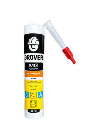 Властивості На основі акрилового полімеру. Має чудову адгезію до більшості будівельних матеріалів. Забезпечує високу міцність клейового шва на зсув і розрив, а також швидку фіксацію склеюваних елементів. Не містить розчинників. Не має запаху. Не пошкоджує поверхні, що склеюються і не залишає жовтих плям. Зручний в роботі, не стікає, не капає, є ідеальною основою для фарбування. Стійкий до впливу вологи, хімічних речовин, атмосферних факторів і старіння. Не рекомендується застосовувати для приклеювання дзеркал, бітумних матеріалів, поліетилену, поліпропілену. Не підходить для поверхонь, що постійно знаходяться в контакті з водою. Призначення Швидкий і міцний монтаж декоративних і важких будівельно -оздоблювальних матеріалів з полістиролу (стиропору), пінопласту, пінополіуретану, дерева, ДСП, МДФ, OSB, фанери, пробки, гіпсу, кераміки, пластику, природного та штучного каменю до базових будівельних основ: бетону, газобетону, гіпсокартону, дерева, цегли, керамічної плитки, цементних основ і більшості пофарбованих поверхонь. Заповнення тріщин, нерівностей, отворів від дюбелів в стінах, стелях, панелях. Для внутрішніх і зовнішніх робіт Для приміщень з підвищеною вологістю Підготовка поверхні Поверхні повинні бути міцними, сухими і чистими. Жирні поверхні обробіть очисником GROVER CLEANER або ацетоном. Підготовка картриджа Перед застосуванням герметик зберігайте при кімнатній температурі не менше ніж 12 годин. Вставте картридж у пістолет-аплікатор, відріжте гвинтову головку картриджа над різьбою. Накрутіть наконечник, верхівку наконечника зріжте під кутом 45° відповідно до ширини шва. Монтаж Нанесіть клей на одну зі склеюваних поверхонь зиґзаґом або невеликими частими точками і відразу притисніть до основи. Якщо потрібно, додатково зафіксуйте поверхні до схоплювання клею. Важкі деталі рекомендовано зафіксувати до повного висихання. Максимальна міцність склеювання досягається за умови, що одна з поверхонь пориста (вбирає клей). Швидкість схоплювання овне висихання відбувається протягом 48 годин, в залежності від умов навколишнього середовища. Не піддавайте великому навантаженню склеювані елементи протягом цього часу. Очищення інструментів До затвердіння - водою. Після затвердіння - механічно Склад Акрилові полімери, функціональні добавки. Колір Білий Витрата 10-12 погонних метрів герметика, якщо діаметр смуги 5-6 мм Час висихання Час повного затвердіння до 48 годин