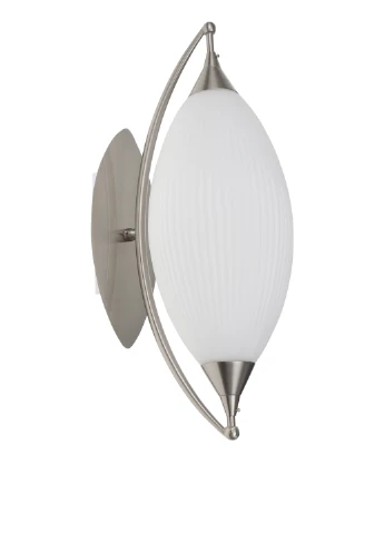 оригінальне бра, зовнішній вигляд якого не залишить байдужим навіть самого запеклого скептика в питанні висвітлення будинку. Бра стане відмінним джерелом додаткового освітлення, його слід використовувати в дуеті з люстрою такого ж стилю. Наше бра виконано в стилі модерн, оригінальна конструкція і переважне використання скла і металу тільки в підтвердження цьому. Основа бра металева, покриття хром, що захищає наш світильник від небажаних ушкоджень, типу подряпин, відколів, а також від процесу корозії. Плафон дуже оригінальної форми, довгастий, суджений на кінцях, з ущільненого скла матового білого кольору. Кріплення «тримає» плафон у підстав на металевих носиках, вся конструкція разом виглядає дуже оригінально і незвично. Розміри бра невеликі, світильник досить компактний, акуратний, великими «габаритами» не виділяється, тому буде акуратно й охайно виглядати на стіні (висота 230 мм, ширина 530 мм, довжина 200 мм). Джерелом світла бра виступає одна лампочка з цоколем Е27, потужність лампи 60 Вт. Працює зі звичайною, всім знайомої лампою розжарювання або з люмінесцентної компактної. Таке бра буде відмінно виглядати в спальній кімнаті або вітальні, також добре підійде в якості додаткового освітлення біля дзеркала. Поєднувати радимо з інтер'єрами класичних зразків. Таке бра додасть романтичності і спокою в ваш будинок, а його теплий, м'який світло зробить вашу кімнату ще більш затишною і ніжною, довжина * ширина * висота, мм: 200 * 530 * 230
